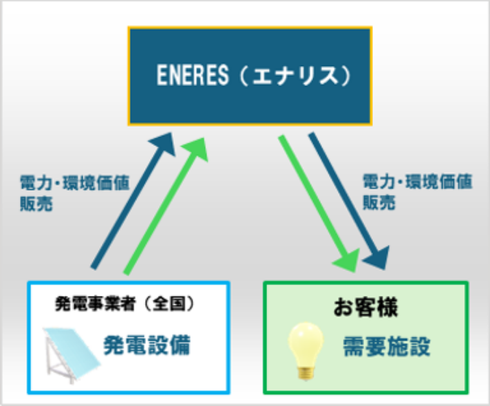 発電事業者とお客様の電力売買を仲介し、お客様の再エネ利用をサポートします。